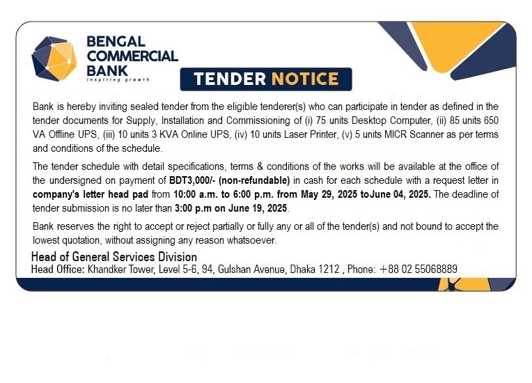 Request for Quotation (RFQ) for Supply, Installation and Commissioning of 75 units Desktop Computers for Bengal Commercial Bank PLC. |