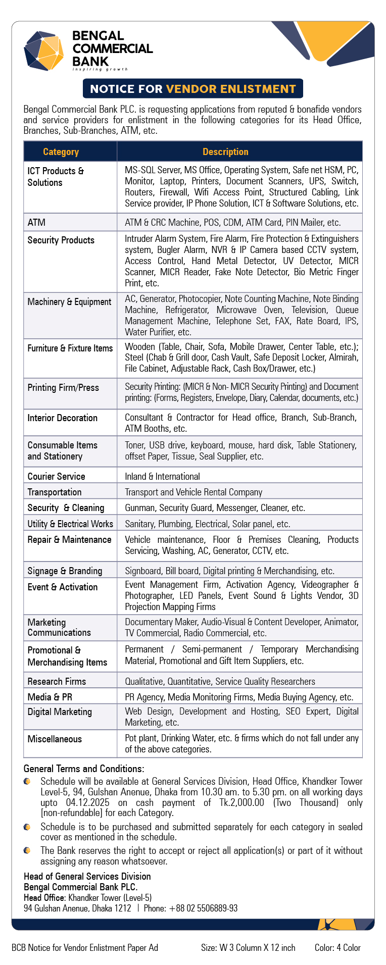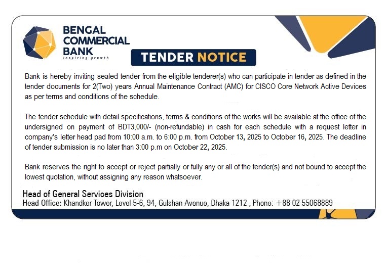 RFQ for Supply, Installation, Testing and Commissioning of Customer Support Center Solution for Bengal Commercial Bank Ltd. |